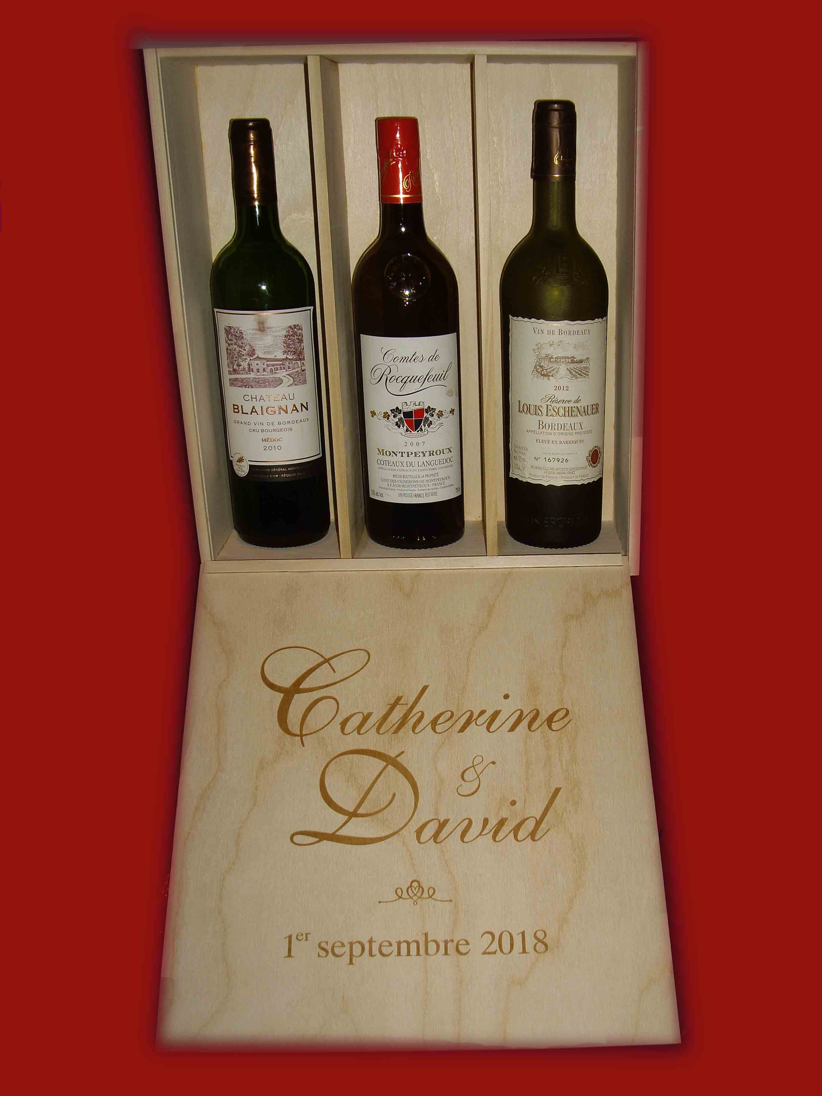 | Coffret à trois bouteilles à vin |